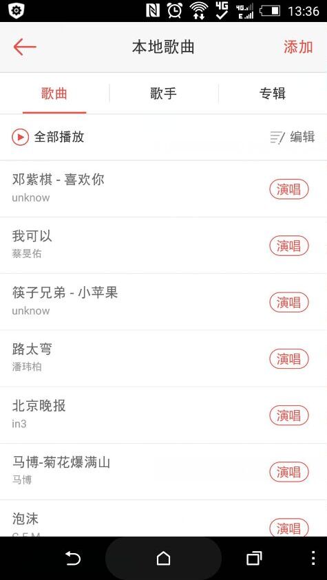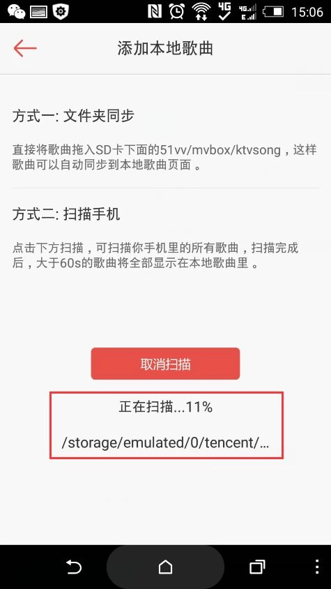 方法一指:使用数据线连接手机与电脑,然后找到手机(或SD卡)上的51vv/mvbox/ ktvsong目录,将电脑上好的伴奏放入此目录下,之后再次打开本地歌曲,就会自动显示出刚才放入的伴奏了。
