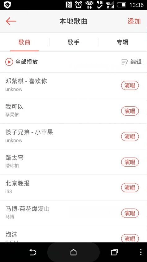 5、扫描完毕后,本地歌曲列表将出现你手机里所有大于60秒的歌曲。
