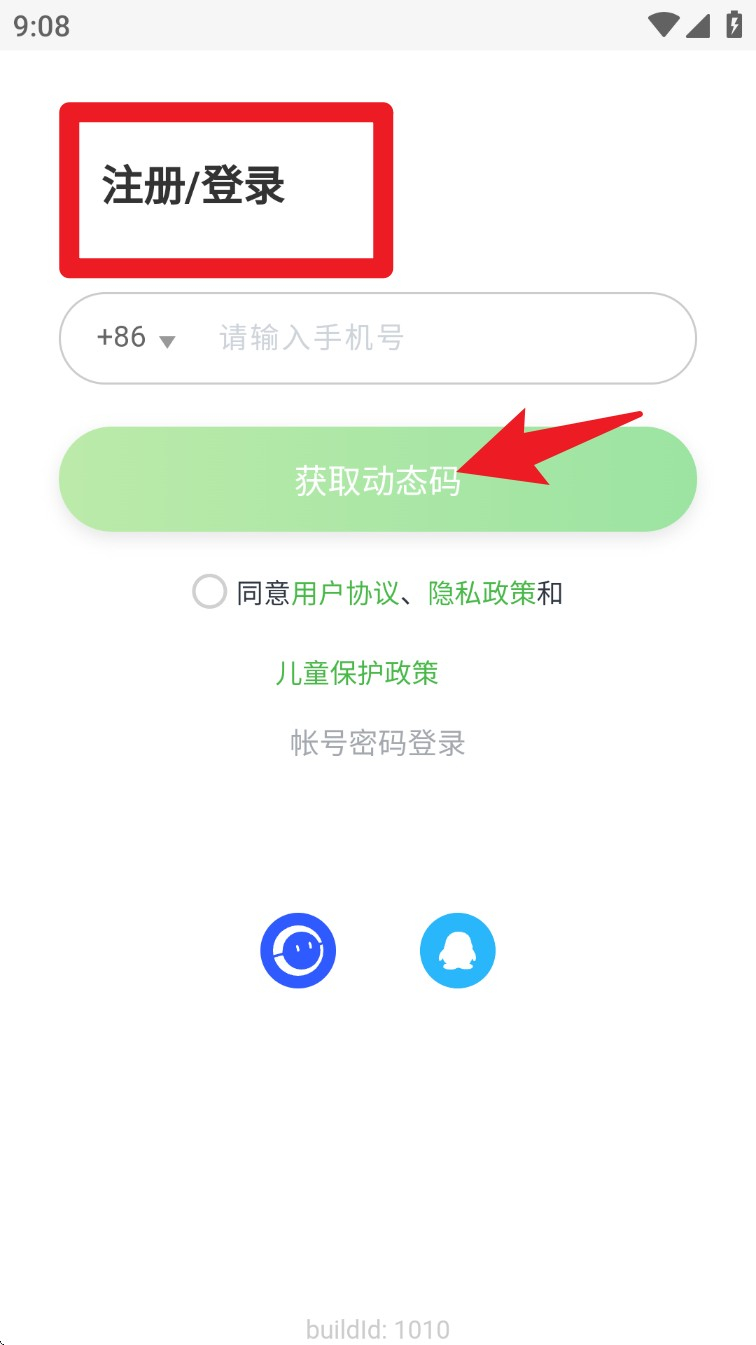 1. 打开 App 进入首页,点击“注册/登录”输入手机号并获取验证码即可完成快捷登录。