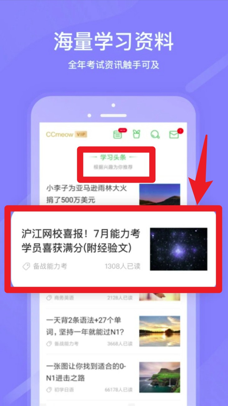 4. 点击“学习头条”可查看考试相关资讯与经验分享,系统会根据兴趣推荐内容。