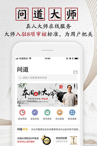 1、问道大师汇聚了众多国学领域的专家学者,为用户提供高质量的学习资源和指导。