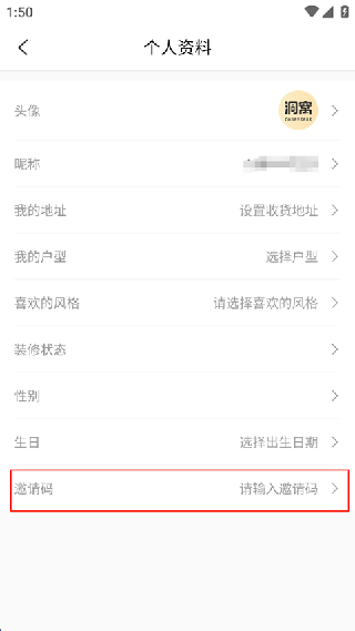 2. 于个人资料页面,点击下方的邀请码。