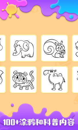 乐园中准备了16种远古动物的线稿,像霸王龙、旋齿鲨都包含在内。宝宝能拿起小画笔为这些线稿涂色,要是想快速完成填色,也可以借助颜料桶工具。当涂鸦结束后,宝宝还能解锁对应动物的百科知识,让学习内容变得更丰富。此外,乐园里还有16种森林动物的线稿,比如老虎、猴子、斑马和梅花鹿等。宝宝可以挑选其中任意一种动物的线稿,开启自己的艺术创作之旅。要是宝宝不小心画错了,点击画板左侧的箭头就能返回上一步;要是想重新进行涂鸦,点击删除按钮就能从头开始。
