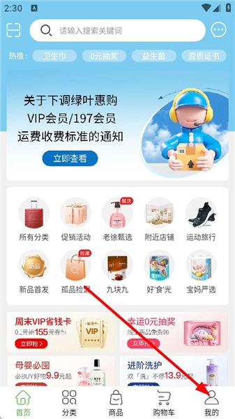 1、打开正版的绿叶商城,点击底部的“我的”选项,进入个人中心页面。