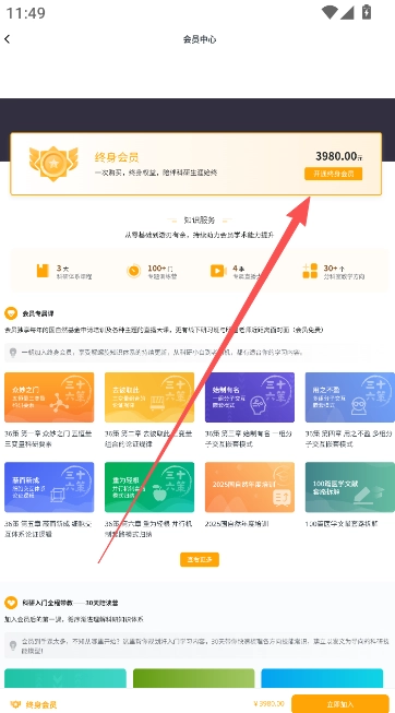 2、终生会员的费用已明确标注,用户只需选择支付该费用并完成后续下单操作即可。