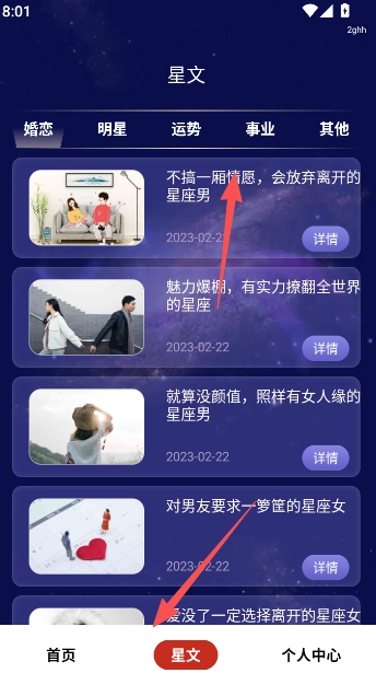 2、星文,主要以资讯内容为主,图文结合的形式为大家测算运势。