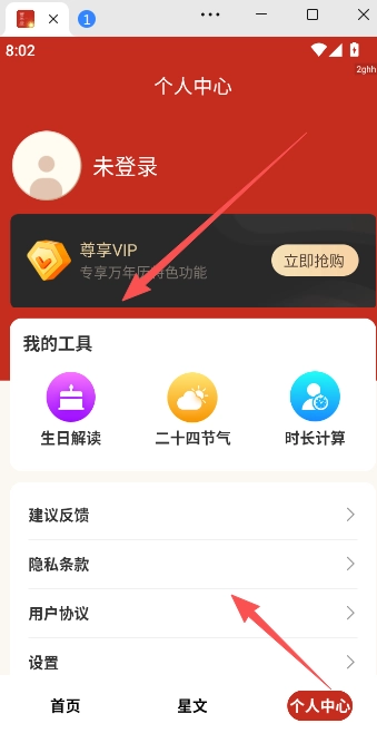 3、个人中心,另外提供生日解读、二十四节气、时长计算等功能,帮助大家解读一些生活紧密相关的事项。