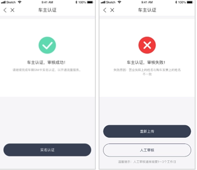 3、车主认证通过后,将自动为用户绑定车辆,如果用户自动审核失败,可通过点击页面下方的人工审核按钮进行人工审核。