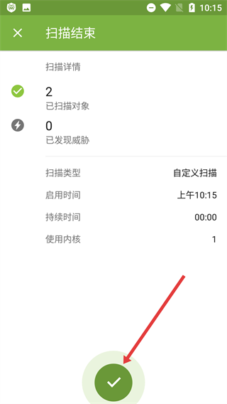 4、完成扫描后,查看页面上的【已扫描对象】【已发现威胁】等详细信息,以此掌握本次自定义扫描下的系统安全状况。
