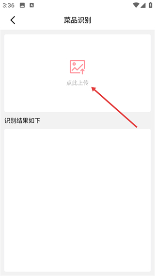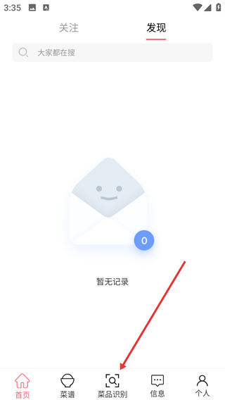 在美食类应用的首页,点击底部的【菜品识别】选项,就能进入菜品识别的功能页面。