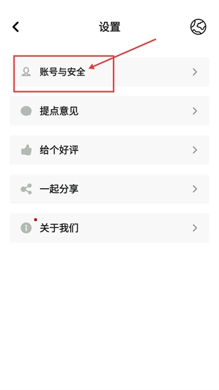 2、进入设置页面后,找到【账号与安全】选项并点击,即可进入账号相关的管理界面。