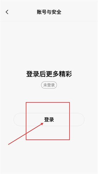 3、进入账号与安全页面后,点击【登录】按钮,即可进入应用的账号登录/注册流程页面。