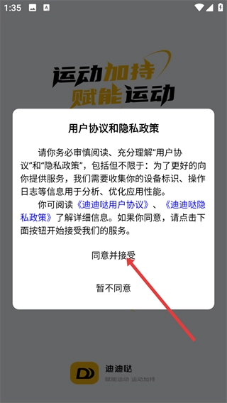 1、阅读《迪迪哒用户协议》与《迪迪哒隐私政策》内容后,点击“同意并接受”按钮,确认协议以推进应用使用流程。