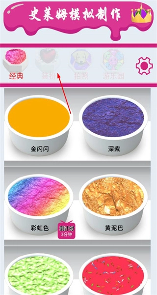 1、史莱姆制作:提供多种史莱姆原材料和配方供用户选择,可以自由搭配颜色、添加装饰物,模拟真实的史莱姆制作过程。