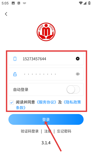 4、在登录界面中,填入【账号】与【密码】信息后,确认勾选相关协议,点击【登录】按钮完成账号登录操作。