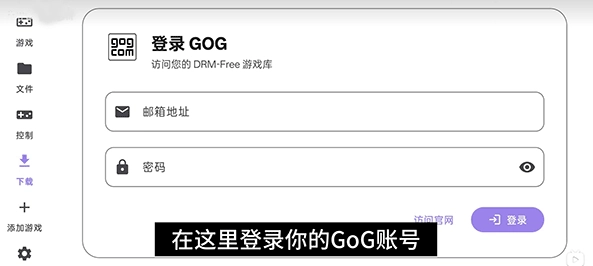 2、然后登录你的GOG账号