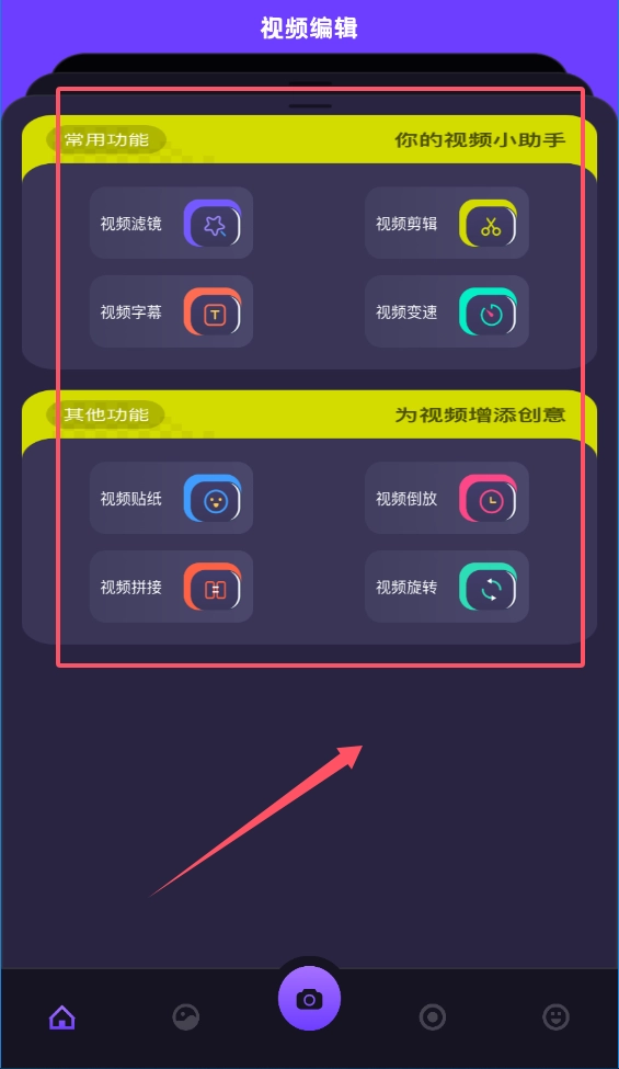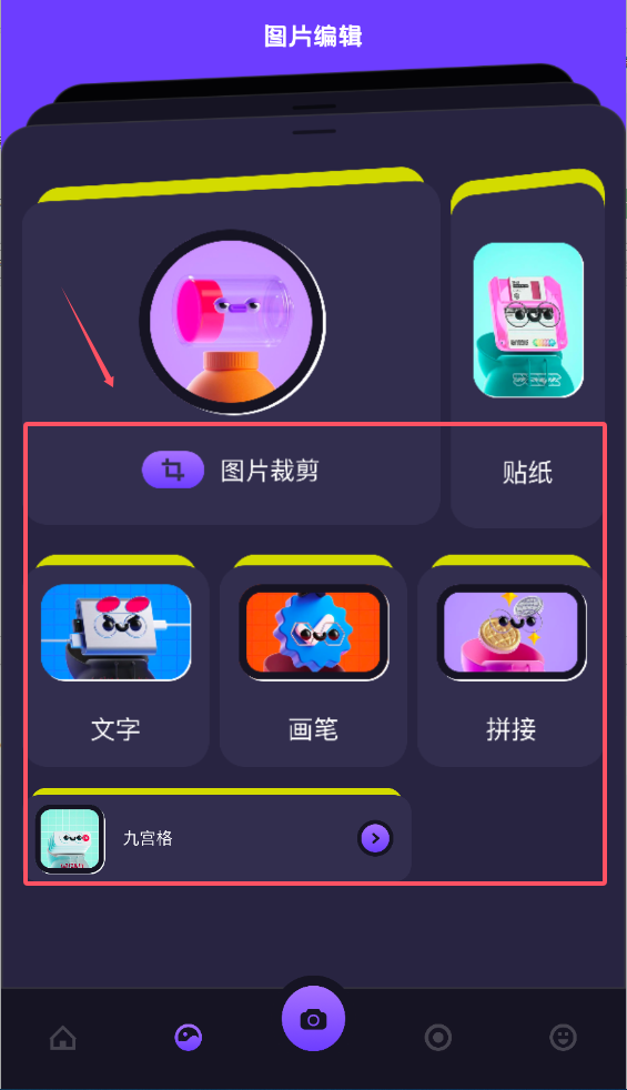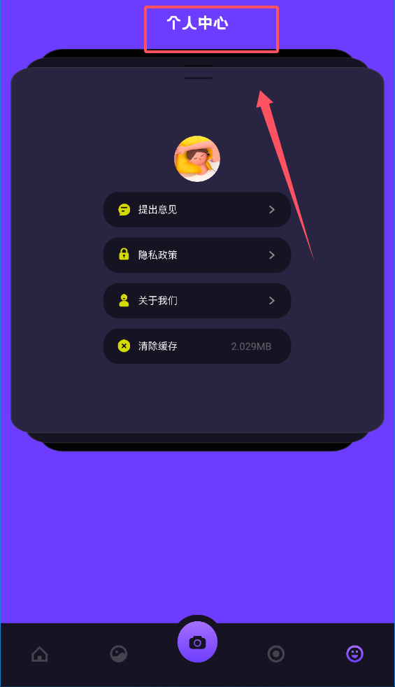 1、进入个人中心就如同回家开门,底部的相机图标是开门的钥匙,里面的各个功能分区就像家里不同的房间一样。