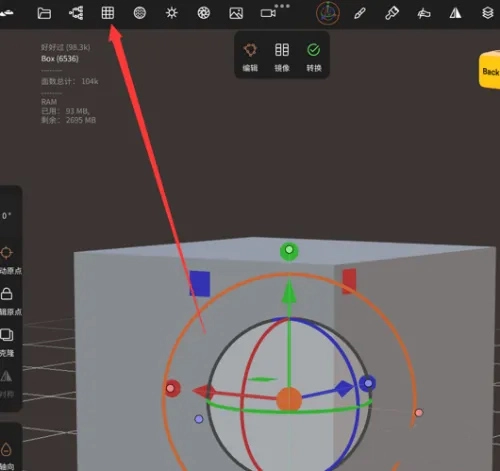 1、点开Nomad Sculpt软件屏幕中最左上角的按钮;