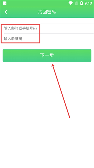 3、进入【找回密码】页面后,按顺序填写【输入邮箱或手机号码】和【输入验证码】这两项内容,接着点击【下一步】按钮,即可完成密码找回的相关操作。