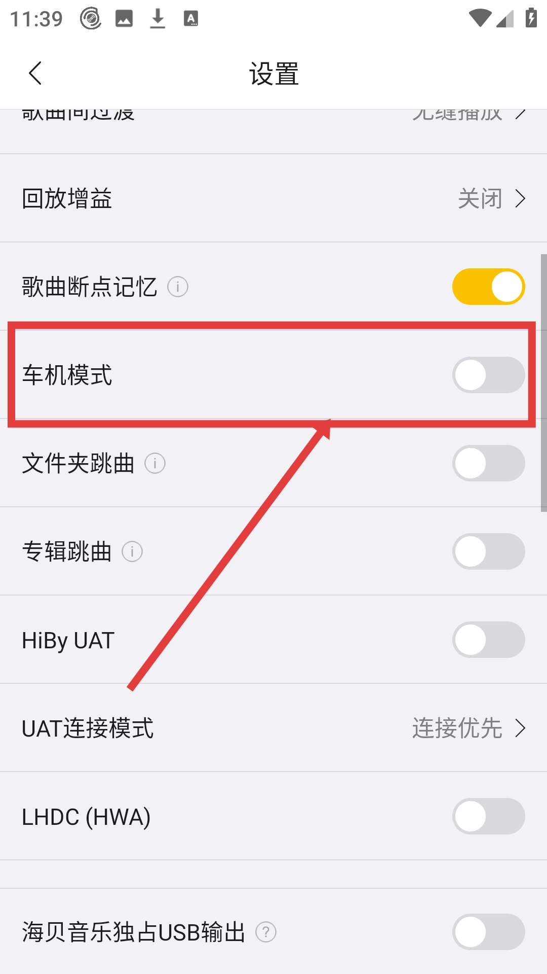 3、进入设置界面后找到【车机模式】选项,点击对应的开关按钮就能开启或关闭车机模式啦。