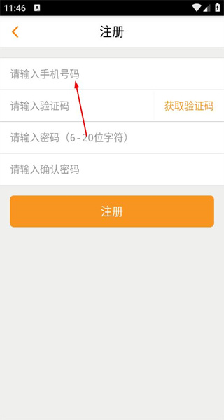4、进入注册页面后,先在对应的输入框中填写手机号码,之后再完成其他注册信息的填写。