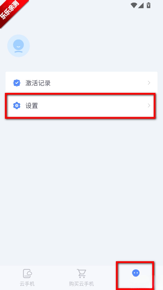 1.打开游游蜂云手机之后,找到【我的】,点击【设置】。
