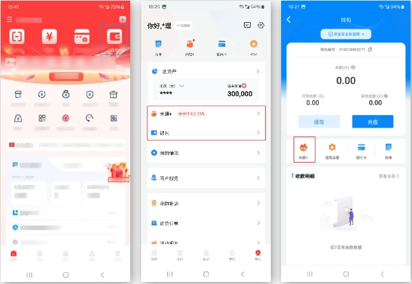 *拉卡拉首页或【我的】页面点击【钱包】可使用钱包功能,开通“余额+”可享补贴收益