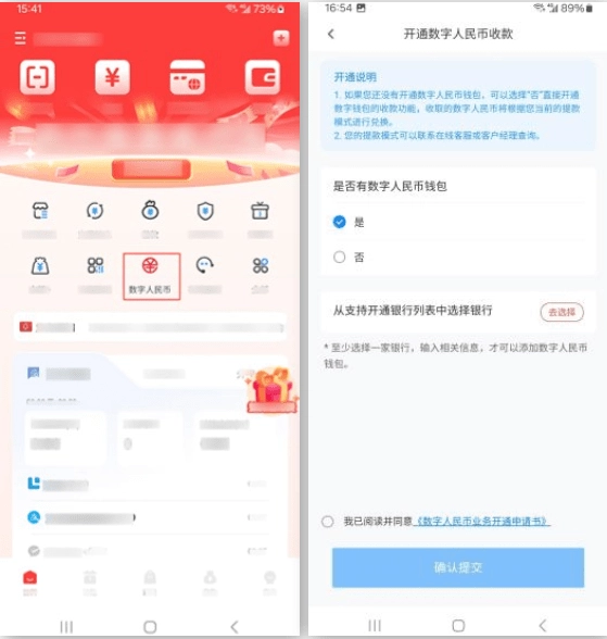 支持开通数币交易功能或查看数币收款数据汇总