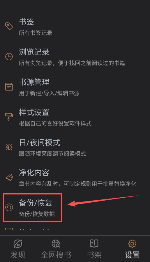 4、记得定期使用备份功能来保护书架数据,这样就算更换设备,阅读进度也不会丢失了。