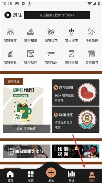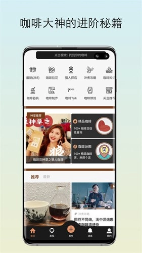 3、咖啡猎人首页设有咖啡赛事、咖啡知识等多个功能入口,还包含咖啡地图等特色板块,能助力用户全方位了解咖啡世界。