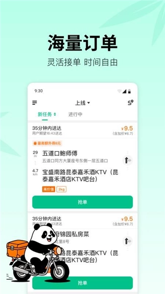 4、平台持续汇集大量同城即时配送需求,保障配送员在不同时段都有充足的订单可供选择。