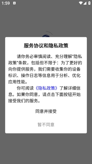 1. 用户首次使用时需要查看服务协议喝隐私政策,点击同意并接受。