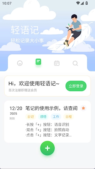 轻语记智能记事本是一款简洁易用的记事工具,帮助人们快速记录生活点滴、工作事项与灵感想法,提供多种记录方式,包括文字、语音和图片,注重隐私保护,支持本地存储或加密同步,在通勤途中、会议间隙等场景下随时进行记录。