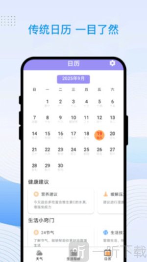 4.具备传统日历查询的功能,同时包含丰富的健康建议与实用的生活窍门。