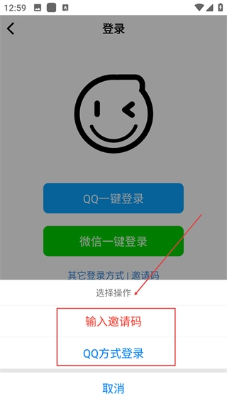 3、在登录页,可选择【QQ一键登录】或【微信一键登录】,也可点击“其它登录方式|邀请码”展开更多选项。