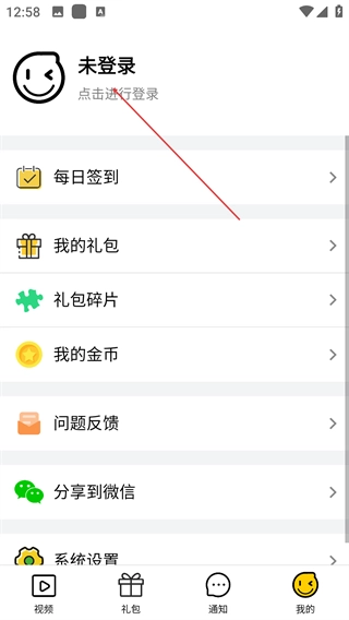 2、进入【我的】页面,点击顶部的“点击进行登录”提示,进入登录选择界面。