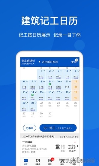 是一款施工人员必备的出工记录软件,能够随时随地查看员工的考勤出班情况,高效的工地办公模式可以在分开管理中高效运行,还有记事本能够轻松的记录每一天的内容。
