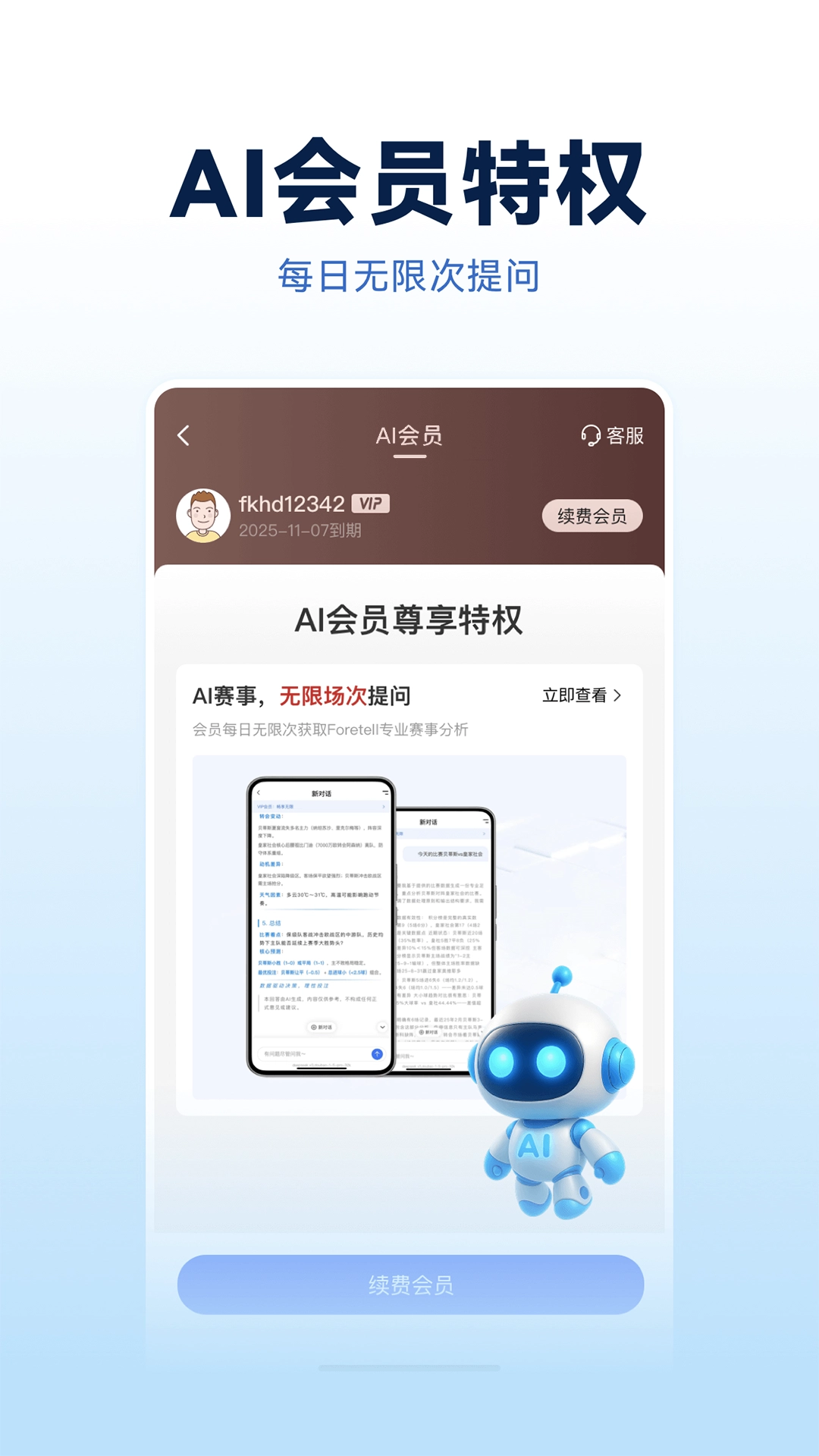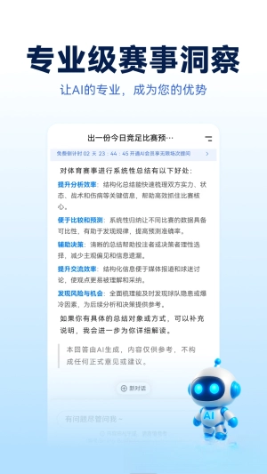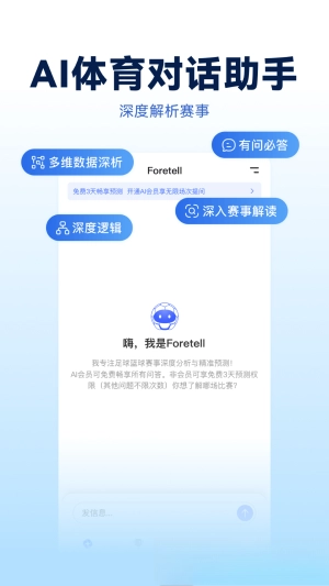 这款软件尤其适合体育赛事的爱好者体验,让你不再需要上网到处寻找资讯和自己做功课去预测,花几分钟去输入需求即可静静等待回复,全程快速又轻松,节省精力时间的同时答案绝对是最靠谱且全面的!