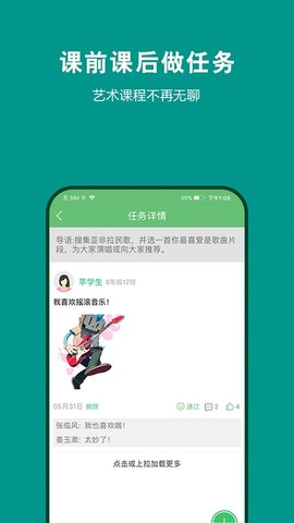 用户可借助学习模块与校内模块开展习题练习、提交作品并获取评价,以此展现自身才华;在校外模块中,则能参与各类艺术活动,彰显实践能力。通过持续的测评与练习,用户的艺术水平及素质教育能力将得到提升。在向老师提供手机号后,用户只需静候通知,待账号创建完成,便可发掘自身潜力,与同学、老师共同进行点评交流,实现自我成长。