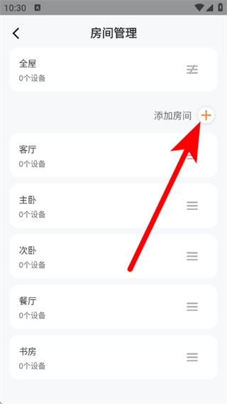 4、在房间管理页面,点击添加房间,进入添加房间页面。