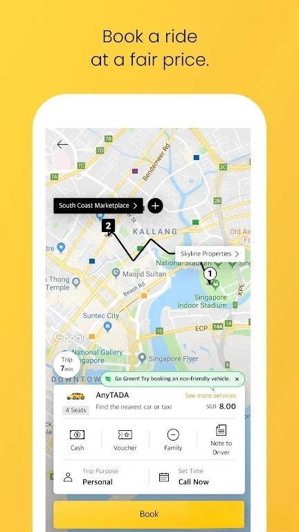 TADA是一款新加坡推出的专业出行服务平台,提供出租车、私家车等多种车型选择,具备实时导航、在线支付、电话沟通等实用功能,致力于为用户打造便捷安全的出行体验,需要的用户赶快体验吧!