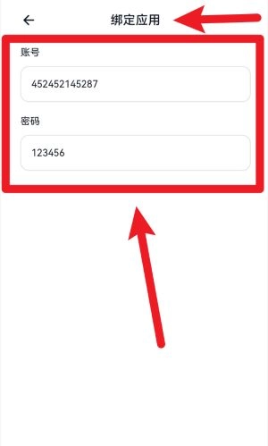 在“绑定应用”界面里,用户要输入指定的账户与密码信息,以此完成系统绑定的操作。