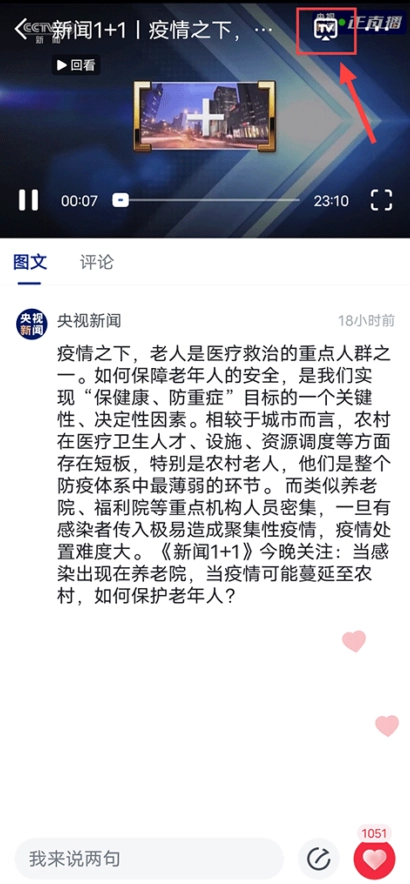 1.挑选出自己心仪的新闻视频,接着点击下方的“”图标,