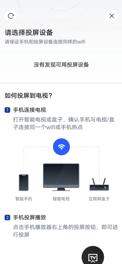 2、请确保您的手机和电视/盒子连接着同一个WiFi或手机热点,搜索到对应设备并点击您的投屏设备后,即可完成投屏操作,过程十分简单。