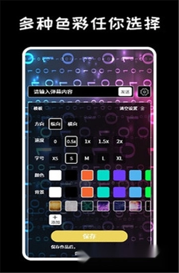 手机弹幕LED显示屏软件是一款专注于自制超大滚动字幕的应用,借助它,你能在手机上制作各类高清酷炫的LED手持弹幕,不仅能为自定义弹幕设置丰富多样的颜色和背景特效,还可根据需求调整滚动速度,满足你在不同场合的使用需求。
