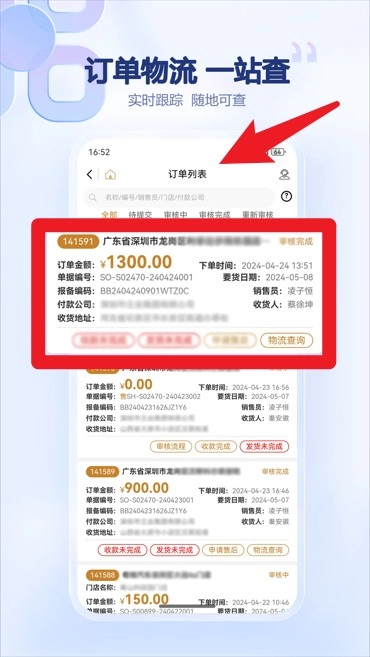 在订单管理界面,能实时查看物流进度与订单详情,订单状态清晰明了,操作也十分便捷。