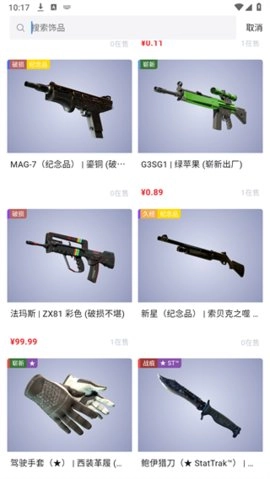 饰品海洋:拥有海量的饰品库存,会和CS2等游戏同步更新新品,始终紧跟潮流的步伐。