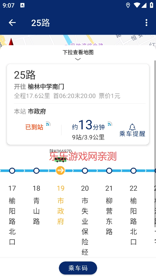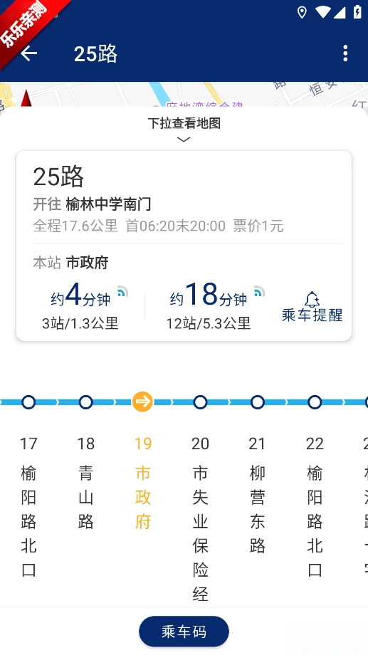 4、扫码乘车:完成充值后,打开榆林公交App,点击首页底部中间位置的“扫码乘车”图标,把乘车二维码对准公交车刷卡机的扫码区域,等听到“刷码成功”的提示音,就说明支付成功了。