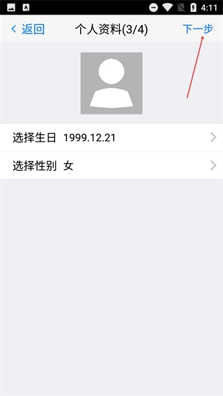 4、进入“个人资料(3/4)”环节,填写生日、性别等个人信息,填好后点击【下一步】推进注册流程,直至完成账号注册。