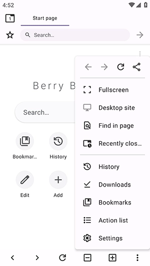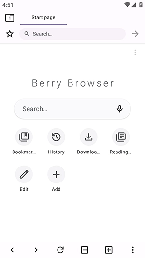 Berry浏览器是一款非常简洁的浏览器软件。该浏览器中页面十分简洁,功能少但是都十分实用,优秀的搜索引擎可以帮助你搜索到任何你想要搜索的网页,的器速度也非常快哦;浏览器在浏览网页时还会自动屏蔽网页中的各种广告,让你拥有一个良好的浏览环境。